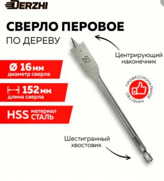 Сверло перовое по дереву 16х152мм Держи 8305-017