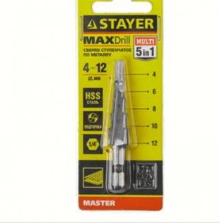 Сверло ступенчатое по металлу ф4-12мм СТАЕР 29660-4-12-5