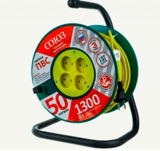 Удлинитель ТМ СОЮЗ силовой на катушке с 4гн. с/з 50м 2200Вт