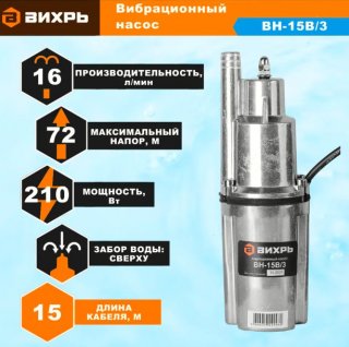 Вибрационный насос "Вихрь" ВН-15В верх. забор 68/8/2